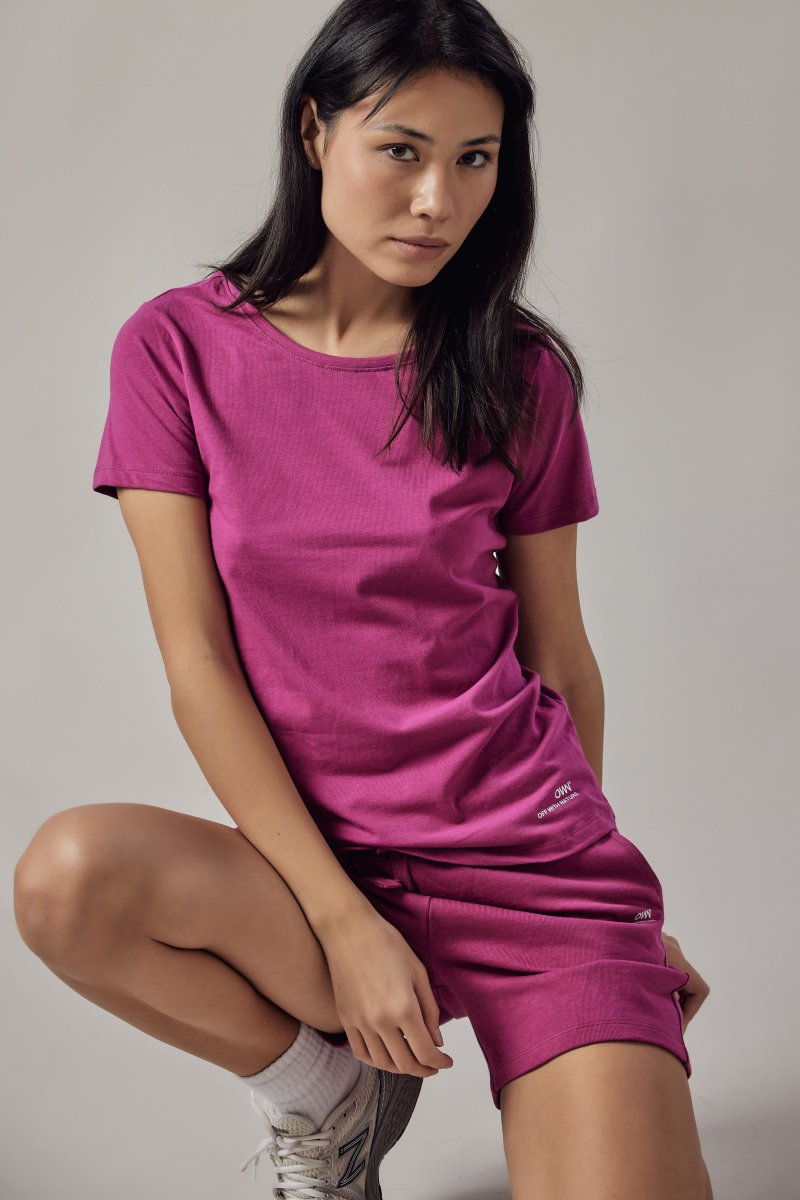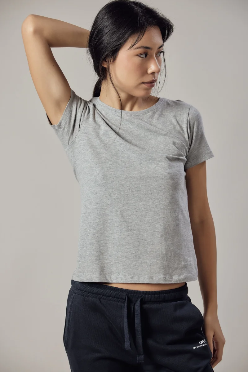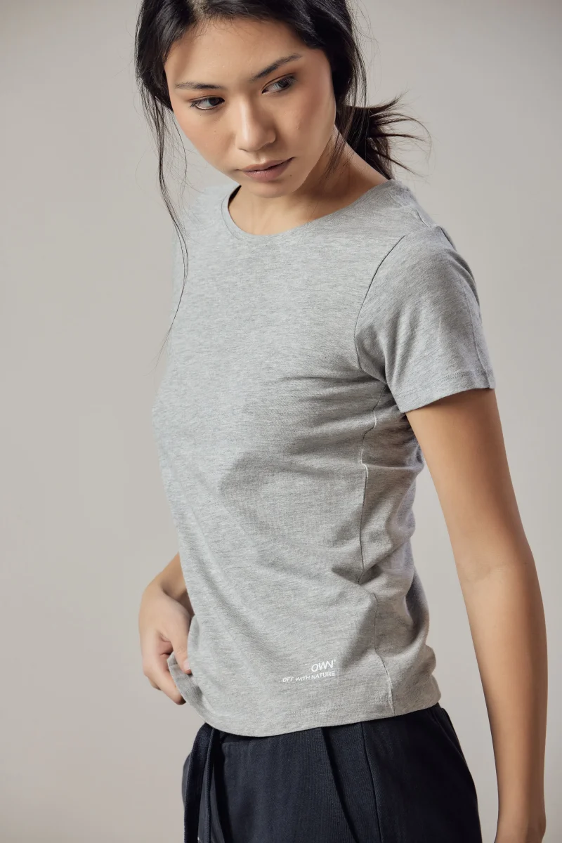 T-shirt elasticizzata a manica corta.Realizzata in cotone organico certificato di alta qualitร .La variante Grigio Chiaro Melange include una percentuale di viscosa nella composizione.