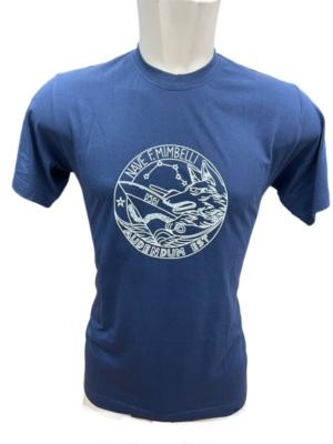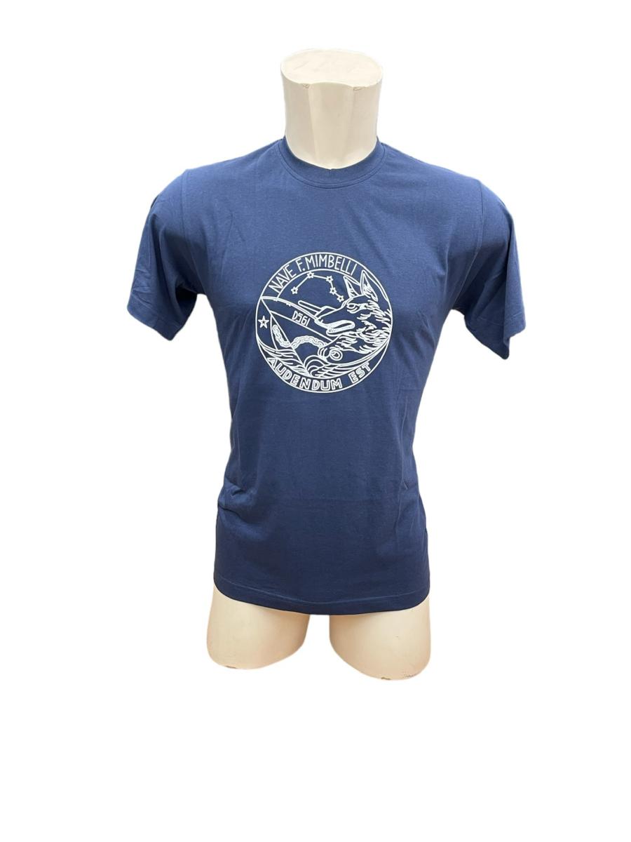 T-Shirt manica corta in 100% cotone, colore blu, con stampa Nave Mimbelli.