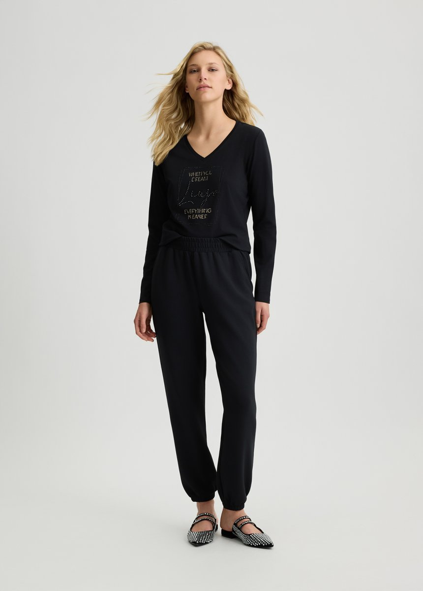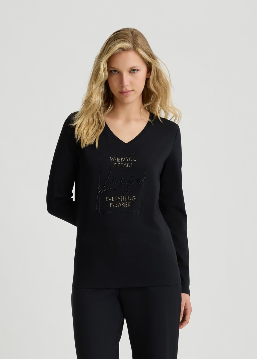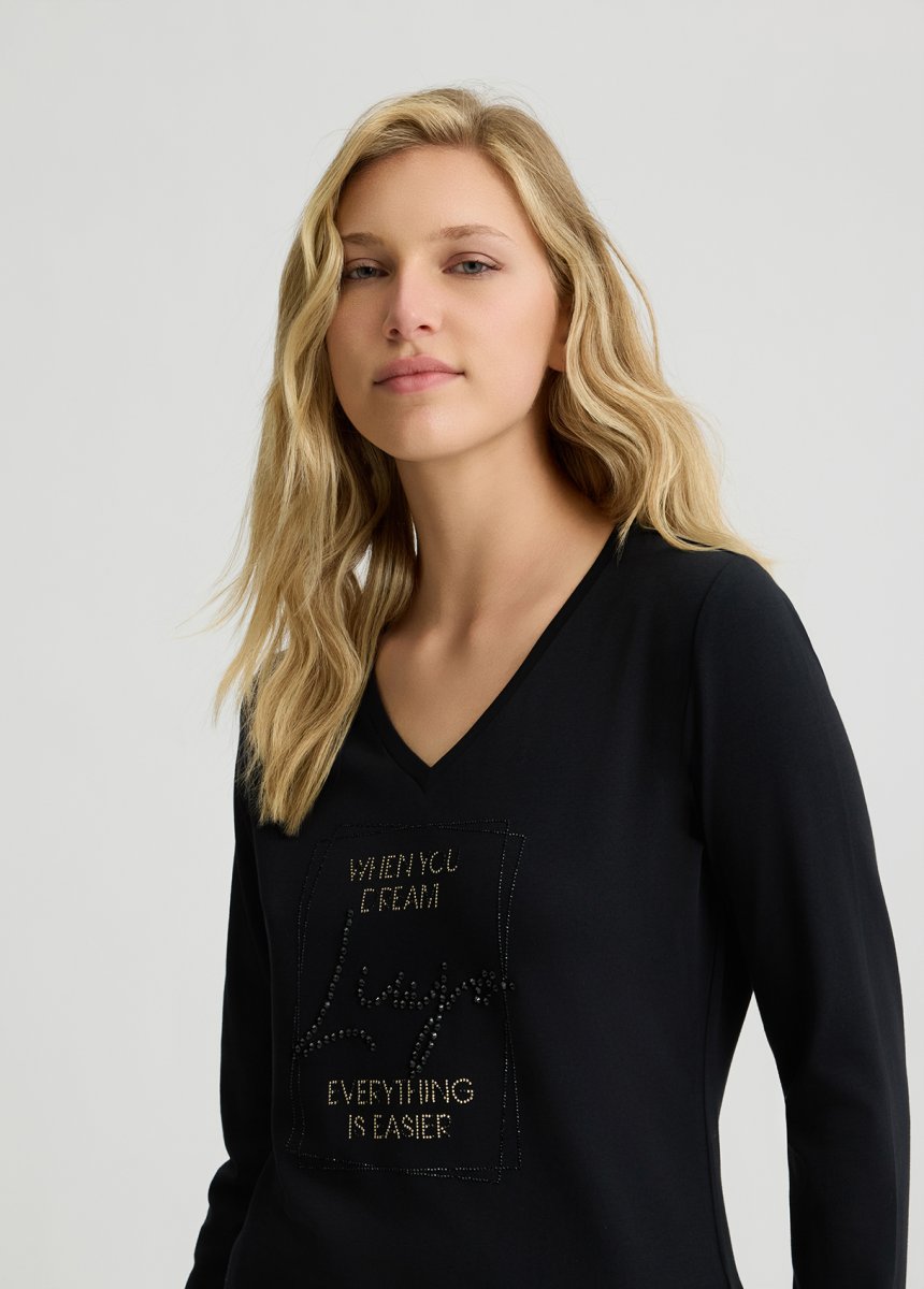 Composizione: 95% cotone 5% elastan Colore Nero / White milk/stras