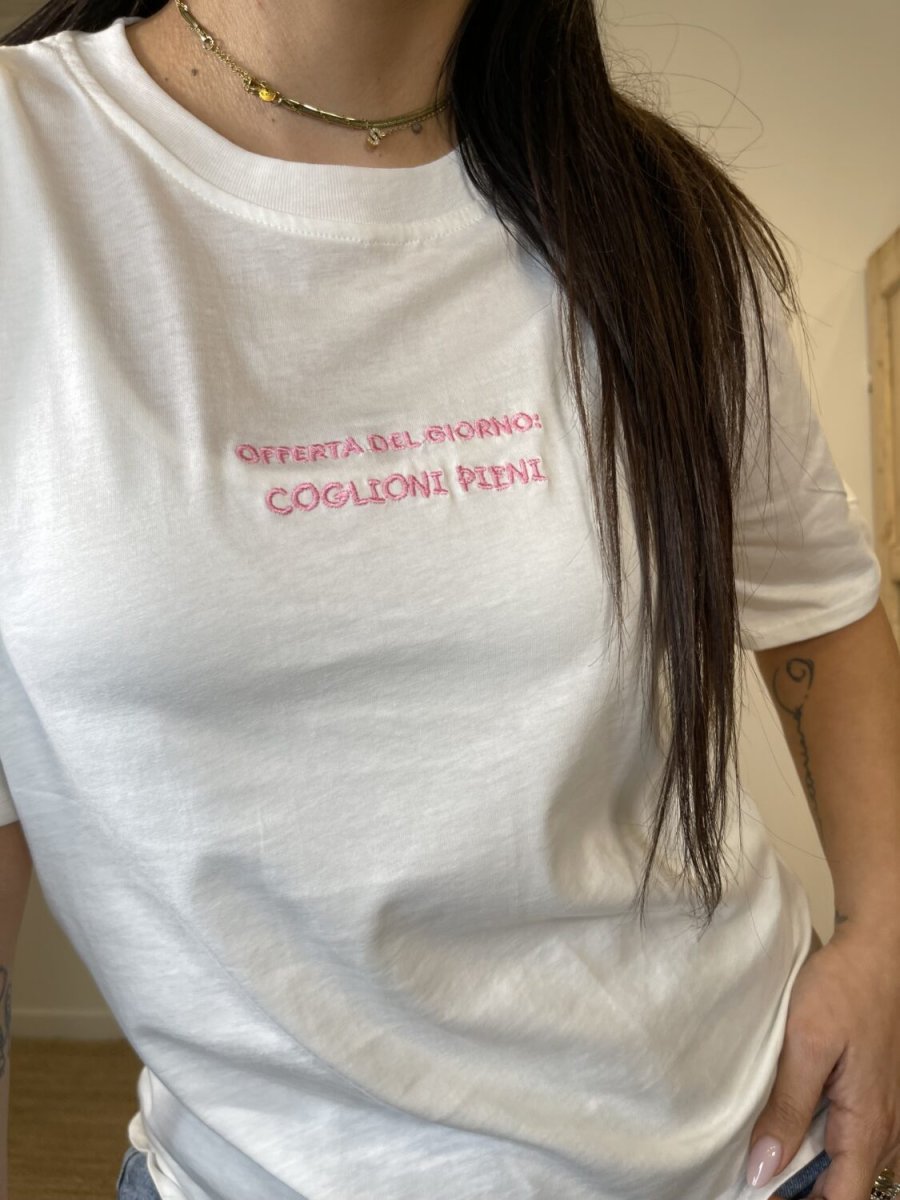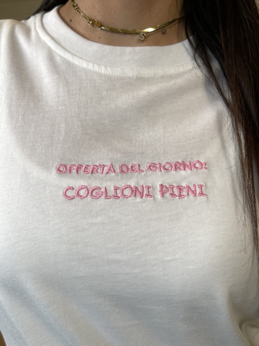 100% cotone scritta ricamata adatta fino a tg 48