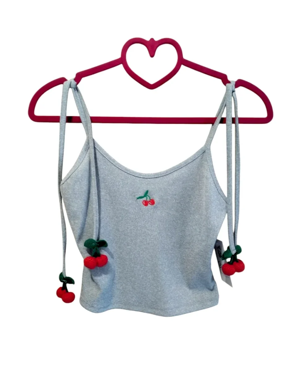 Tendenze ciliege, Mood #StayYoung, basic, crop, costina finissima con scollo semi rotondo e spallina regolabile con laccetto e nappine!