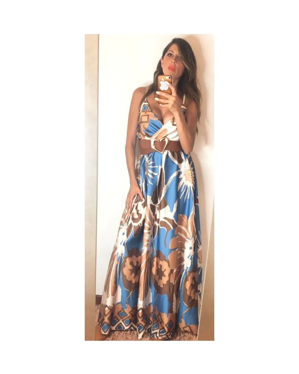 da F A V O L A.. Lungo, modello satin a fantasia a fiori, palette azzurro/crema, scollo a V, bretellina fina con scollo alto..apribile ad ogni movimento della camminata! ▪️Taglia Unica ✨ Il costo di spedizione è di €5 in tutta Italia, comprese le Isole Maggiori. ✨ Spedizione gratuita con ordini superiori a €70.