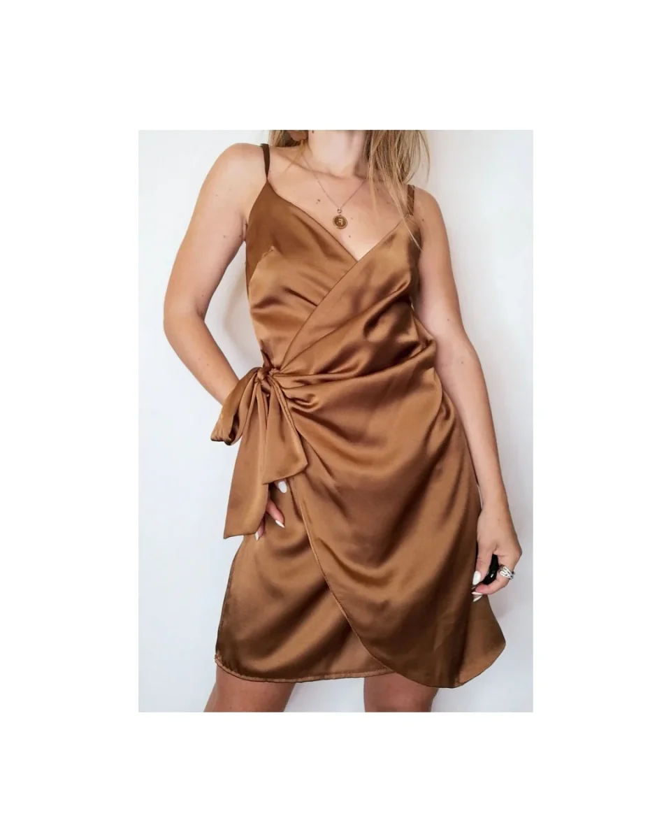 Classico vestito che ti salva il look, leggero, comodo, da inserire in valigia, modello adatto a tutte le fisicità grazie alla chiusura a portafoglio: doppio laccio interno ed esterno, scollo a V con bretellina regolabile, l’elastico dietro alla schiena favorisce l’adattamento della gonna sui fianchi, satin tinta unita!