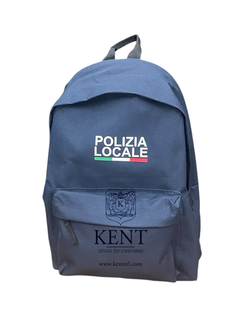 Zainetto in cordura 600 D blu con stampa Polizia Locale tricolore.