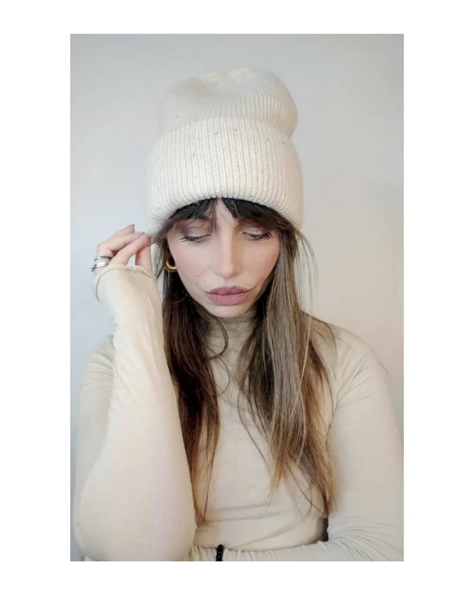 Il cappello non รจ solo un accessorio per completare il tuo look ma un vero copricapo che ti salva dal freddo invernale, elevata qualitร in 65% viscosa, 20% cashmere, 10% angora, consistente, caldo e morbido, chic, lussuoso e luminoso con micro paillettes, con o senza PON PON!